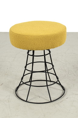 Skandinavischer Vintage-Polsterhocker, Retro-Metall und Kunstleder-Pouf