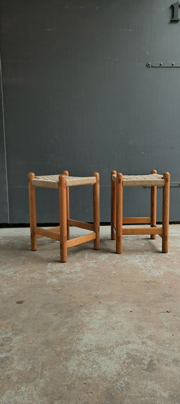 Vintage Brutalist Schwedische Kiefer Hocker Beistelltische
