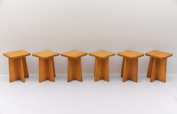Vintage-Hocker aus massivem Kiefernholz, zugeschrieben an René Martin, 1960