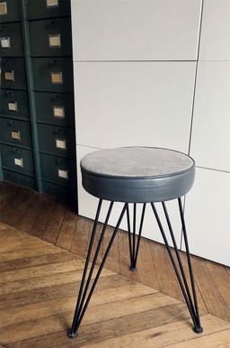 Vintage-Hocker aus Kunstleder mit Eiffel-Fuß