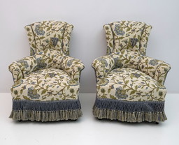 Satz von 2 Sesseln mit Blumendruck von Carl Straub für Goldfeder 1960er Jahre