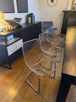 Set aus 7 Vintage-Stühlen im Stil von Gastone Rinaldi / Chrom / Rohrgestell