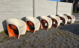 6 Stühle mit geripptem Stoffbezug und verchromtem Rohrgestell