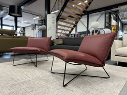 2 Leolux Scylla Sessel Roter Stoff braunes Leder