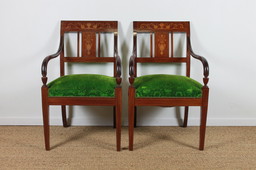 Sechs Art Dèco-Esszimmerstühle aus italienischem Nussbaumholz, 1940er Jahre
