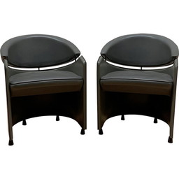 Postmoderner Schaukelstuhl aus schwarzem Leder von Takeshi Nii, 1950er Jahre