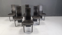 Satz von 6 italienischen Esszimmerstühlen aus Leder und grünem Lack, 1980er Jahre