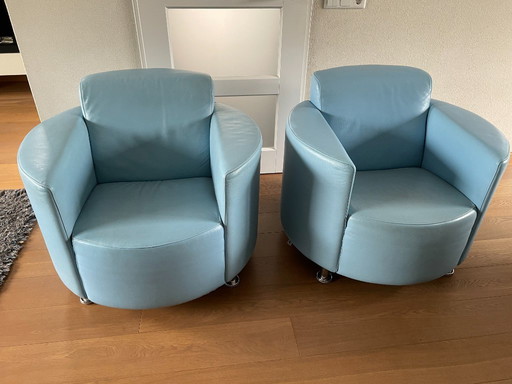 Leolux Pallone Sessel, blau-schwarzes Leder