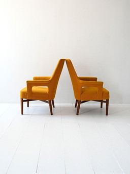 Paar gelbe skandinavische Vintage-Sessel aus den 1950er Jahren