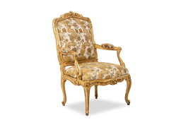 Schwerer antiker Stuhl, vergoldetes Holz, schöner Gave-Stoff