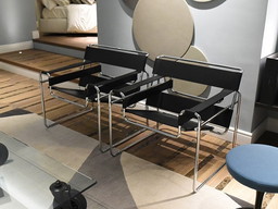 ALIVAR MVSEUM 2 Satz von 2 Celeste (Türkis) gerippten Baumwolle LC 2 Sessel von Le Corbusier, P. Jeanneret, C. Perriand aus dem
