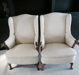 Ohrensessel aus den 1950er Jahren in zweifarbiger Optik, Kirschholz, neu bezogen
