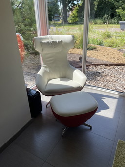 Leolux Volare Stuhl & Hocker in weißem Leder