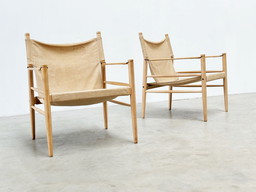 Zwei Safaristühle aus Eiche und LeinenZwei Safaristühle aus Eiche und Leinen