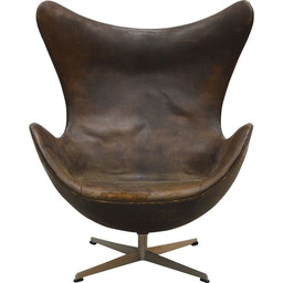 Eierstuhl mit braunem Lederbezug von Arne Jacobsen für Fritz Hansen, 1958