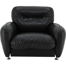 Sessel aus schwarzem Leder, Italien 1970Sessel aus schwarzem Leder, Italien 1970