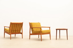 Seltenes Paar dänischer Sessel aus Teak & Mohair 1950er