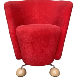 Mid Century roter Sessel mit besonderen BeinenMid Century roter Sessel mit besonderen Beinen