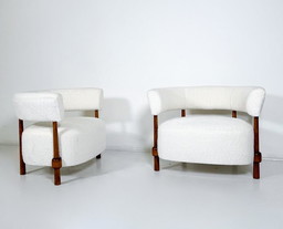 Paar zeitgenössische Sessel, Holz und weißer Boucle-Stoff, Italien