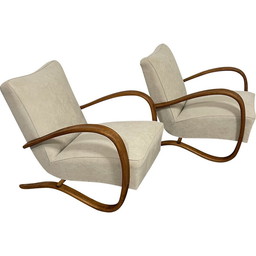 Paar alte Halabala H269 Sessel aus Holz und Stoff von Jindřich Halabala für Up Závody, Tschechoslowakei 1950