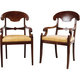 Paar alte Mahagoni-Sessel mit hellem Stoff, 1860