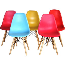 Satz von 5 Stühlen aus farbigem Kunststoff und Schale