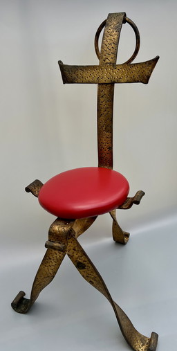 Handgeschmiedeter Designstuhl – Spanien – Brutalistisches Eisen mit rotem Sitz