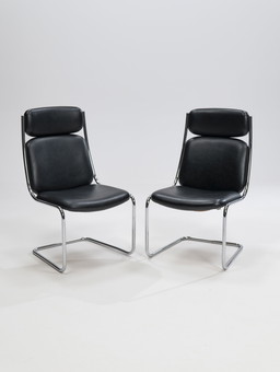 2x Freischwinger Lederstühle von Mauser Werke Waldeck, Westdeutschland, 1950er Jahre