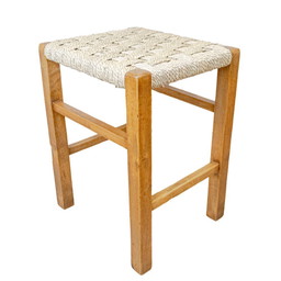 Niedriger Holzhocker mit SeegrasschnurNiedriger Holzhocker mit Seegrasschnur