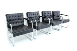 As new, Set of 4 Bauhaus Cantilever armchairs (Freischwinger) with premium leather and chromed tubular steel frame, 1a restoredAs new, Set of 4 Bauhaus Cantilever armchairs (Freischwinger) with premium leather and chromed tubular steel frame, 1a restored