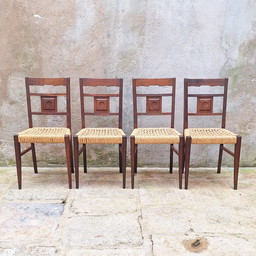 Set aus 4 Stühlen aus Eiche und Seil von Audoux Minnet 50er JahreSet aus 4 Stühlen aus Eiche und Seil von Audoux Minnet 50er Jahre