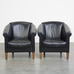 2 x Black English Style Beef Leather Club Chair