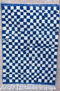 Beni Ourain Teppich in Blau und Creme, 258 x 161 cm