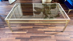 Couchtisch aus geätztem Goldglas auf elegantem Messingrahmen