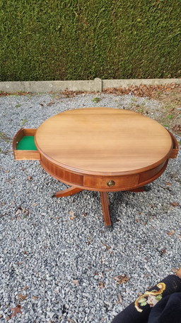 runder, wunderschöner, detailreicher Tisch (klappbar) aus Acajou-Holz, fa FLAMANT