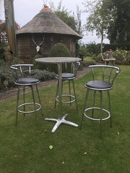 Stehtisch mit 2 Hockern von 1970-1975Stehtisch mit 2 Hockern von 1970-1975