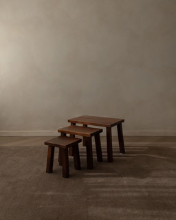 Brutalistischer Wabi-Sabi-Einfluss: Rechteckige Beistelltische/Hocker aus massiver Eiche, 3er-Set, 1960er Jahre.