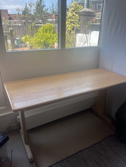 Ein doppelter Vintage-SchulschreibtischEin doppelter Vintage-Schulschreibtisch