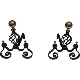 Paar Nachttische aus Schmiedeeisen mit einer Messingkugel, Frankreich 1970Paar Nachttische aus Schmiedeeisen mit einer Messingkugel, Frankreich 1970