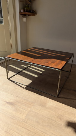 Leolux-Couchtisch aus Glas mit Aluminiumgestell. Ein paar Kratzer auf der Oberseite.