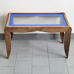 Runder Vintage Couchtisch im Tulpenstil mit blauer Tischplatte, Frankreich, ca. 1960