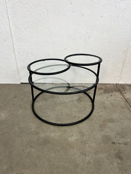 Vintage-Couchtisch / Drehtisch, Metallgestell mit Glasplatte, Niederlande, 1970er Jahre
