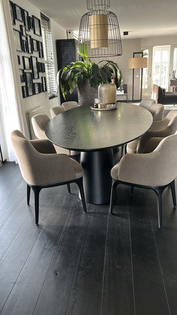 Ob in einer offenen Wohnküche oder einem separaten Esszimmer, ein Esstisch in Schwarz passt sich jedem Raum an. Er wirkt sowohl in kleinen als auch in großen Räumen und ist damit eine vielseitige Wahl für Designliebhaber. Bei Whoppah steht eine Auswahl an schwarzen Esstischen zum Verkauf, die jedes Zuhause bereichern.