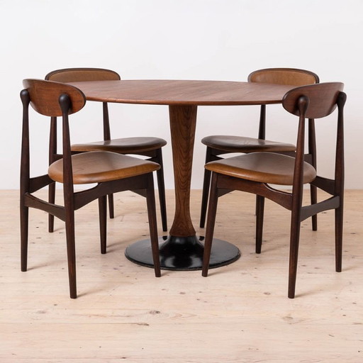 Essgruppe aus Teakholz im Mid-Century-Stil – Tisch – 4 Stühle