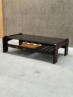 Vintage Art-Deco-Couchtisch Beistelltisch aus Glas, Samt und Leder