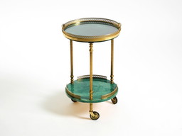 Round, small 1960s Aldo Tura serving or bar trolley in green goatskin leather | Made in Italy