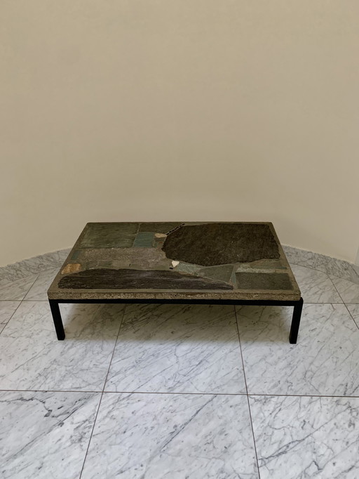 Couchtisch im brutalistischen Stil, Paul Kingsma, Schiefer und Stahl