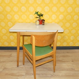 Schwarz-weißer Tisch mit Holzbeinen Kaiser Köln