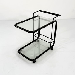 Schwarzer postmoderner Servierwagen mit Quaderna-Muster, 1980er Jahre