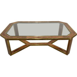 Couchtisch aus geätztem Goldglas auf elegantem Messingrahmen